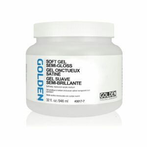 Gel Mediums offer many ways to build texture. We offer five consistencies from our most viscous Extra Heavy Gel to Soft Gel. Each gel is available in Gloss, Semi-Gloss and Matte finishes. They can be used to create glazes, extend paint and change finishes. Gels are essentially colorless paint, as they utilize the same 100% acrylic polymers as acrylic paint. Gels are also excellent adhesives for collage and mixed media, they dry with excellent flexibility with chemical, water and UV resistance. Soft Gels (L-R: Gloss, Semi-Gloss, Matte) are thinner than Heavy Body Colors. Mix with color to produce a brilliant glaze. Soft gels can be a base for wet blending anf also as an adhesive for collage (Item # Gloss - 3010, Semi-Gloss - 3017, Matte - 3013);