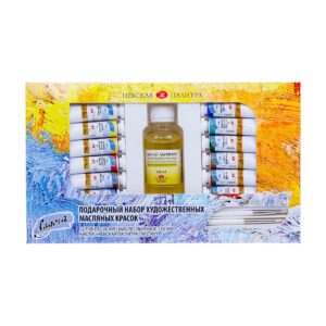 Artists' oil colours «Ladoga» represent a balanced palette of hues for professional education and creative work. Important is that analogs correspond in tone to the original colours. Pigment part of earth colours consists of natural pigments that give saturation and intensity of a tone in contrast to synthetic colours. Artists' oil colours sets 5x60 ml tubes, 9x60 ml tubes, 8x18 ml tubes, 12x18 ml tubes cardboard box