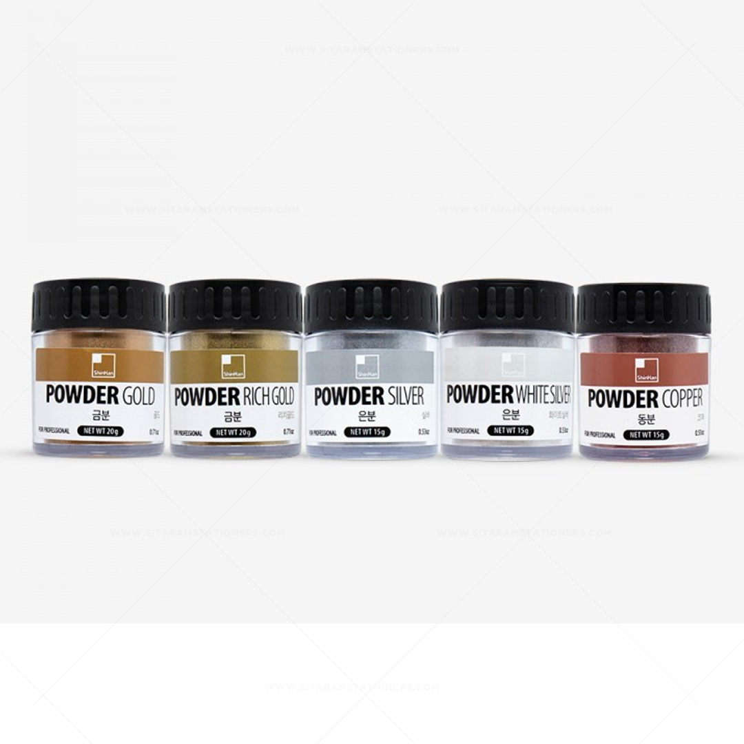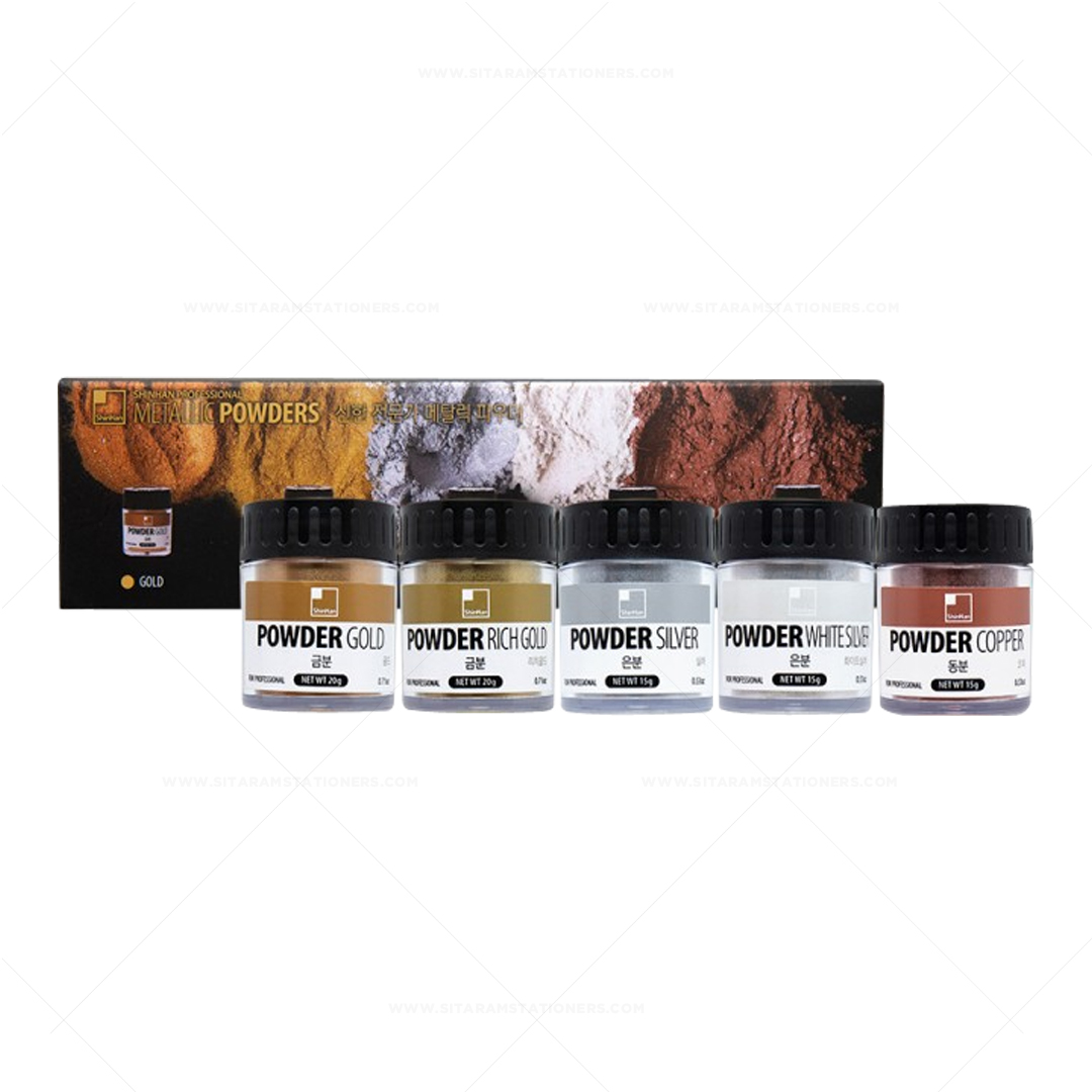 This set contains all 5 ShinHan Metallic Powders: Gold, Rich Gold, Silver, White Silver, Copper.