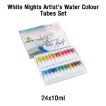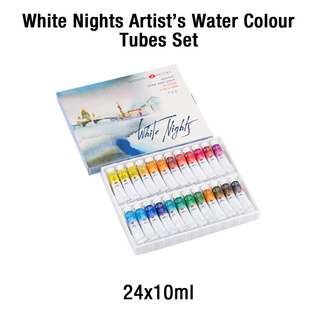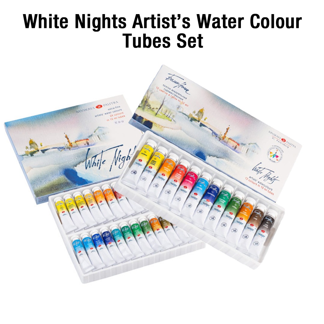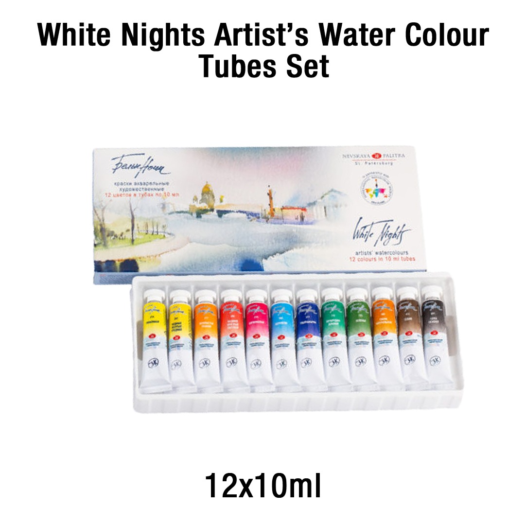 Extra-fine artist’s watercolour “White Nights” are professional watercolours of the highest quality that combine old masters’ traditions and modern production techniques. The paints are produced of finely ground pigments and binders with the addition of Gum Arabic, which is recognized as the best natural adhesive for professional watercolours. The colours have high intensity colour, which do not tone down even when more water is added, thanks to the high concentration and finely ground pigments. The paints have perfect mixing, smearing and spreading qualities. The colour palette consists mostly of mono pigment and lightfast colours.