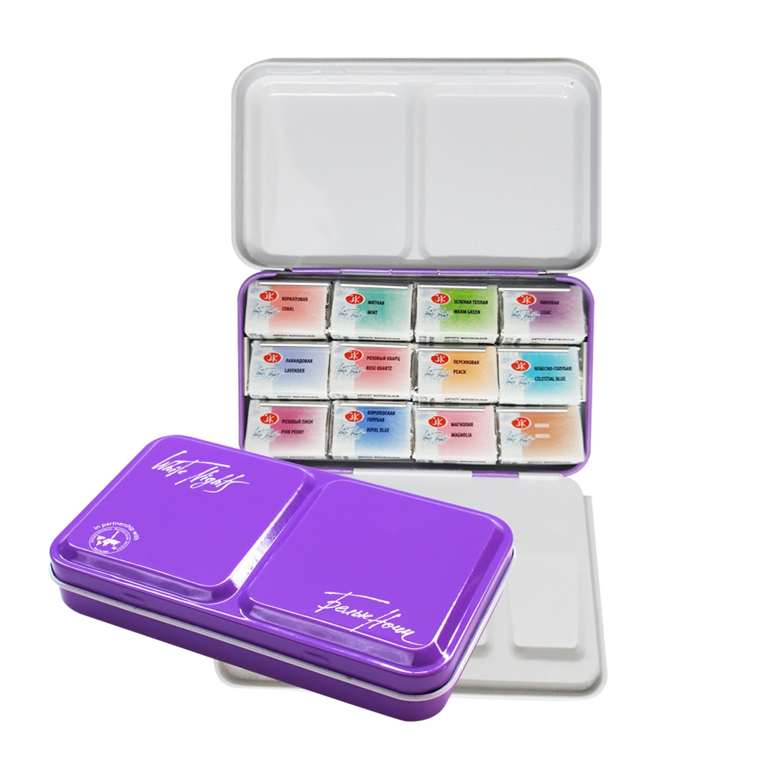 White Night's Artist's Water Colour Metal Palette Full Pans Set of 12, White Night's Pastel Water Colour Metal Palette 12 Full Pans Set- Limited Edition